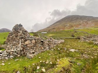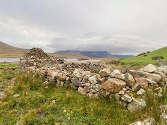 The substantial ruins of the cottage can be accessed over stone road. The property is ideally located with easy driving distance to Kylemore Abbey 17 km, Letterfrack 21 km, Recess(Joyces local shop) 8.5 km, Clifden 29 km.