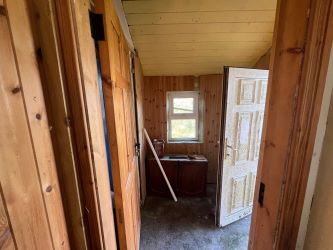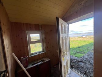 The accommodation consists of front porch, kitchen/living/dining room with solid fuel stove, two bedrooms, storage room, shower room (formally a bedroom) and back porch.