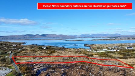 From Galway, take the R336 Connemara Coast Road through Spiddal, Inverin, and Costelloe. Passing Centra in Costelloe on your right, continue on the R374 for a further 8.6 km towards Lettermore, then take a right turn and continue along this road for approximately 450m. The site is located on the right-hand side, identified by the DNG Martin O'Connor For Sale sign.