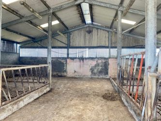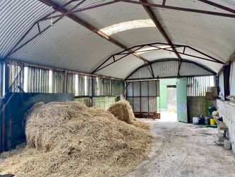 The farmyard is set back from the road has a graveled driveway leading into a large yard area accessed via double gates comes complete with a three bay back to back cattle shed (four bays with slatted tanks - 2 dry bays) and a four bay round top hay barn together with cattle handling facilities and a silage pit slab. The buildings are maintained in good order. The property enjoys a second entrance from the Ballyquirke Lake side road (Back road to Moycullen village).