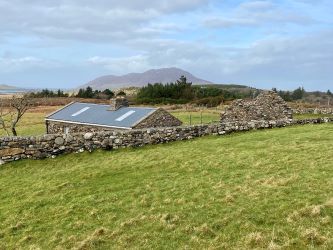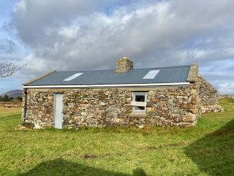 Bordering the Traheen River the cottage dating back to the 1800s is a traditional stone built property under a galvanized roof laid out in two rooms with open fireplaces in each room. Across the yard there are the ruins of a large shed which could be renovated. Looking south the cottage enjoys views of Ballinakill Bay, Tully Hill & Letter Hill to the west whilst to the north Diamond Hill and the Mweelrea mountains with many more hills of south Mayo are visible in the distance.