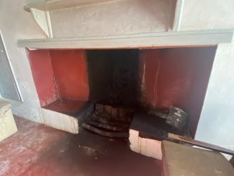 With open fireplace. Stairs to first floor.